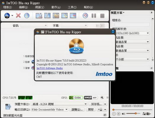 ImTOO Blu-ray Ripper v7.0.0 Build 20120223 專業的藍光影片備份軟體 繁體多國語言破解版